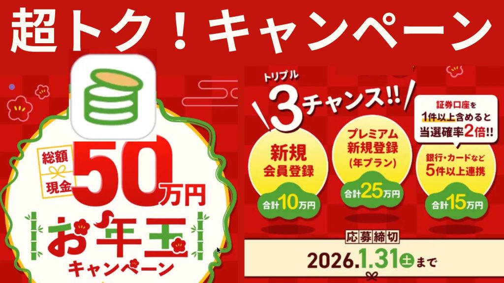 その流れの中で、現在 Zaim(ザイム)の年末年始お年玉キャンペーン が開催されています。