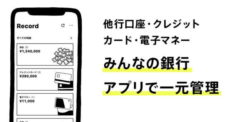 【国内初】みんなの銀行の家計簿「レコード機能」が使いやすい!実際使ってみた感想!他の金融サービスも一元管理できる
