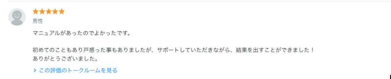 マニュアルがあったのでよかった。サポートしていただきながら、結果を出すことができた。