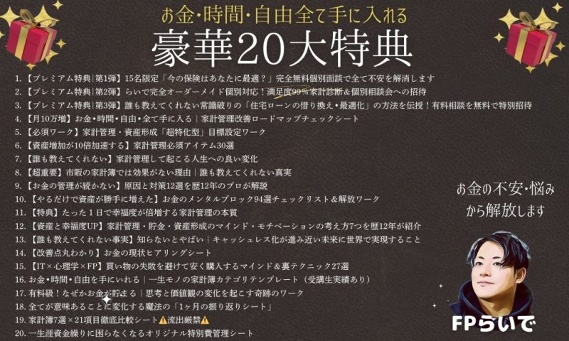 家計改善コンサルの受講生には、「10種類以上の家計管理実践シート」を無料でプレゼントしています。