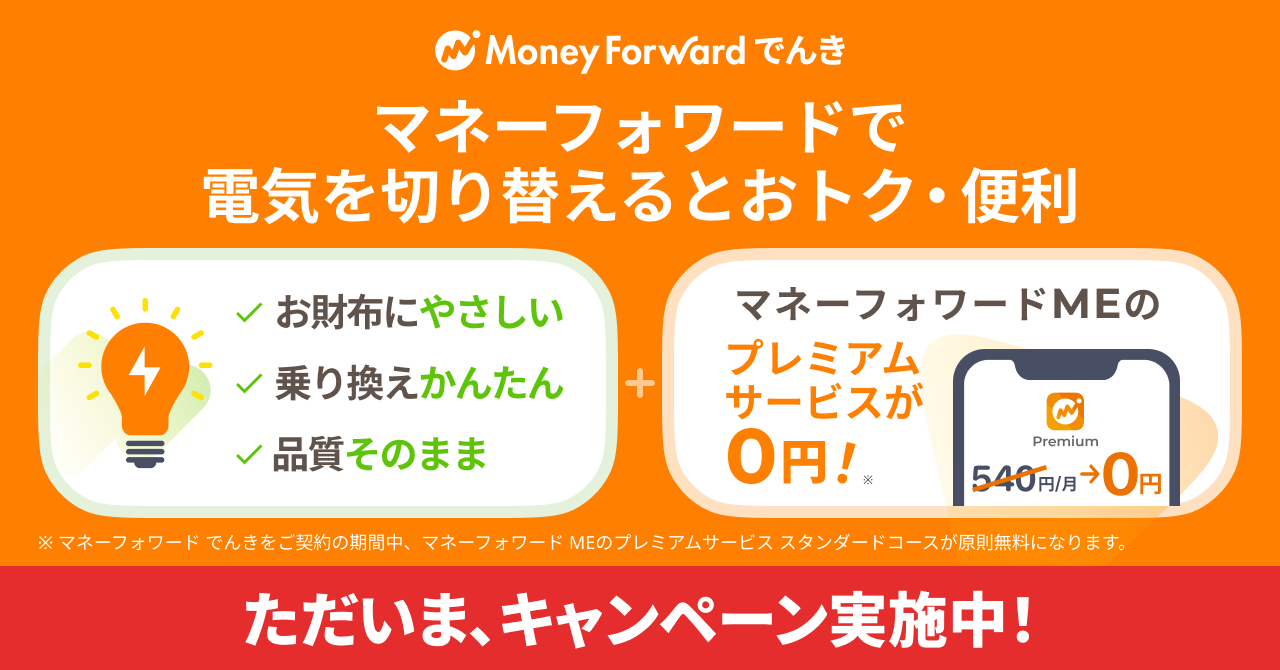 マネーフォワードでんきを利用することで、「マネーフォワード ME」のプレミアムサービスが、月額540円のところを無料になります。