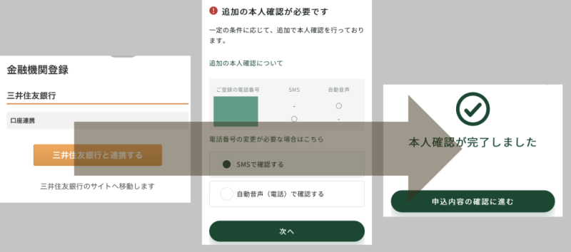 連携金融機関によって画面は異なりますが、IDパスワード入力を済まし、本人認証などを行うことで自動連携が可能になります。