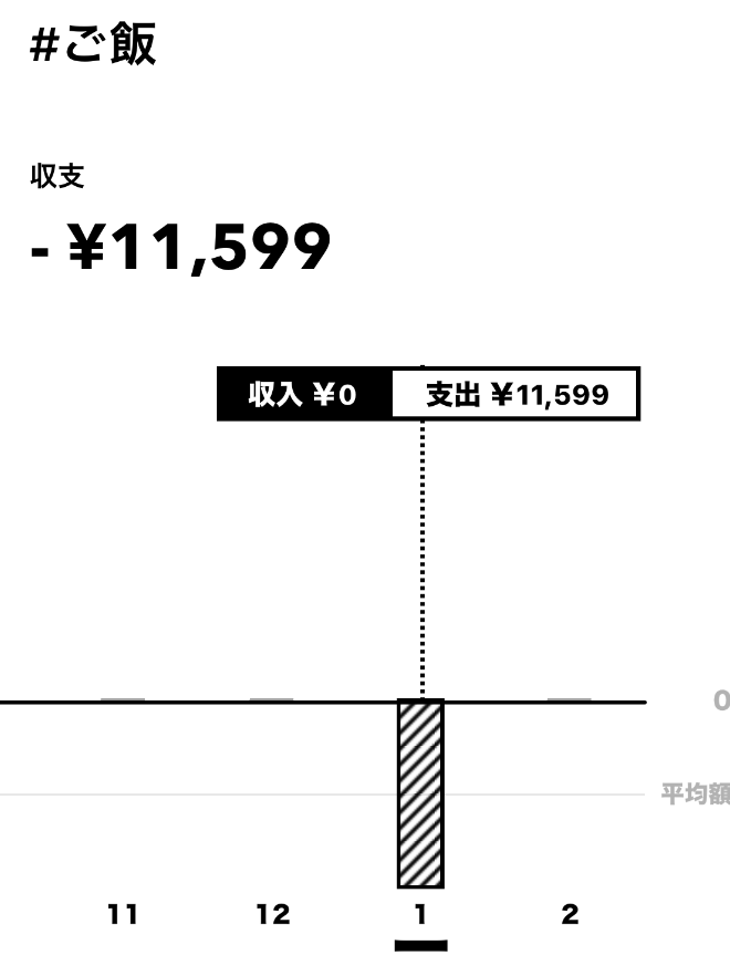 ハッシュタグをもとに支出をパッと振り返れるので、細かいグラフにより簡易的に自分の知りたい情報に合わせた収支管理ができます。