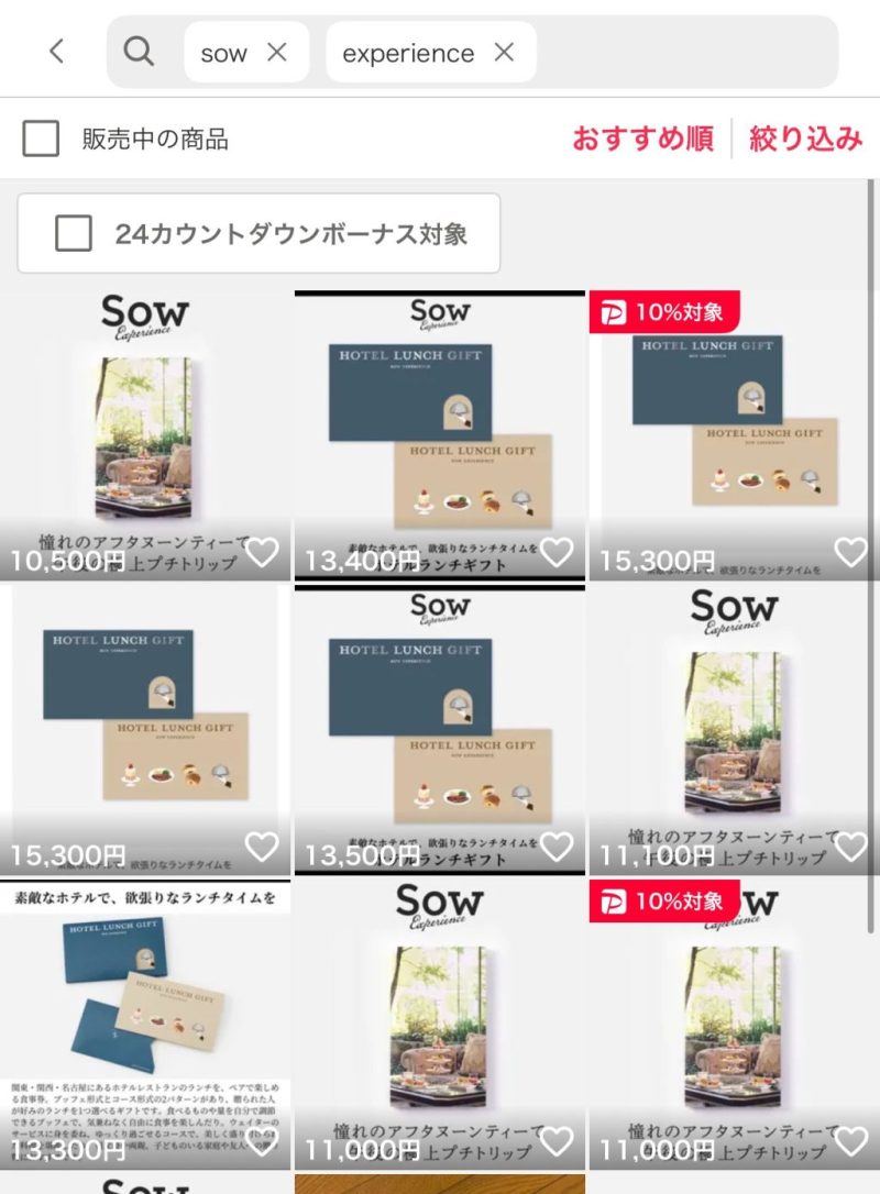 ソウ・エクスペリエンスのギフト券は、ブランドイメージを保つため基本的に定価販売されています。